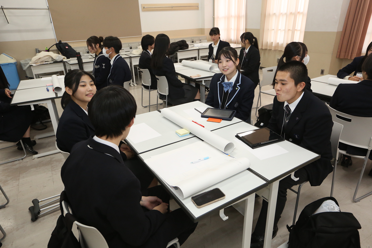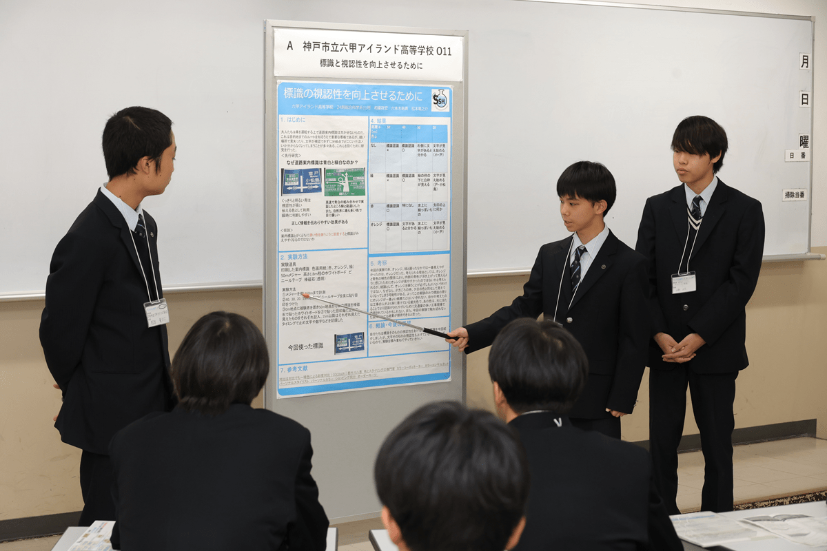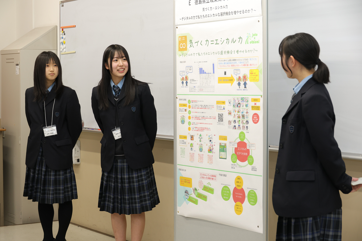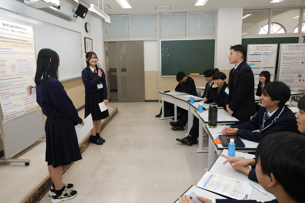 8教室に分かれ、お互いの探究活動の発表と質問を通じたコミュニケーションが展開されました。
