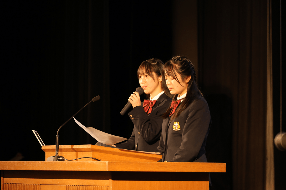 司会は関西学院高等部生が務め、部長の枝川先生からの挨拶がありました。