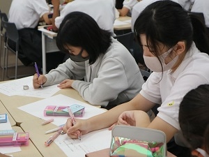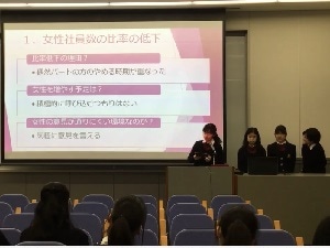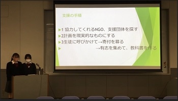 世界の貧困と平和に関する問題について。海外における女性の貧困や教育などの絶対的貧困についてのレクチャーとワークの様子