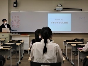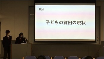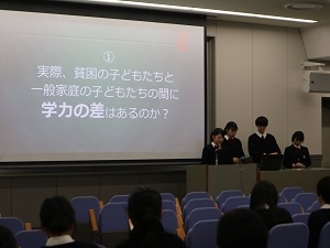 日本の貧困と教育に関する問題について。日本における相対的貧困の現状についてのレクチャーとワークの様子