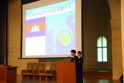 3月18日(水)高中部礼拝堂にて、カンボジア研修旅行の報告会を行いました。