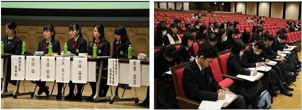 1月21日(土)関西学院大学上ヶ原キャンパスにて開催された、高校生公開討論会に本校のGLP生65名(1年生34人、2年生31人)が参加しました。「EUのエネルギー政策から日本のエネルギー政策について考える」というテーマのもと、それぞれ参加した学校の代表者がパネラーとして登壇し、パネルディスカッションが行われました。