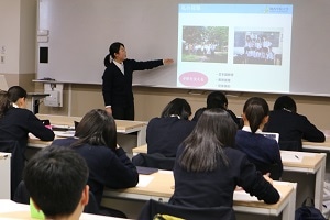 12月12日(水)高等部特別教室棟にてGLP1年生を対象にGLPセッション・デイを実施し、関西学院大学在学中の杉本夏奈さんにお越しいただき、「発展途上国の支援」をテーマにカンボジアでのボランティア活動についてご講義いただきました。