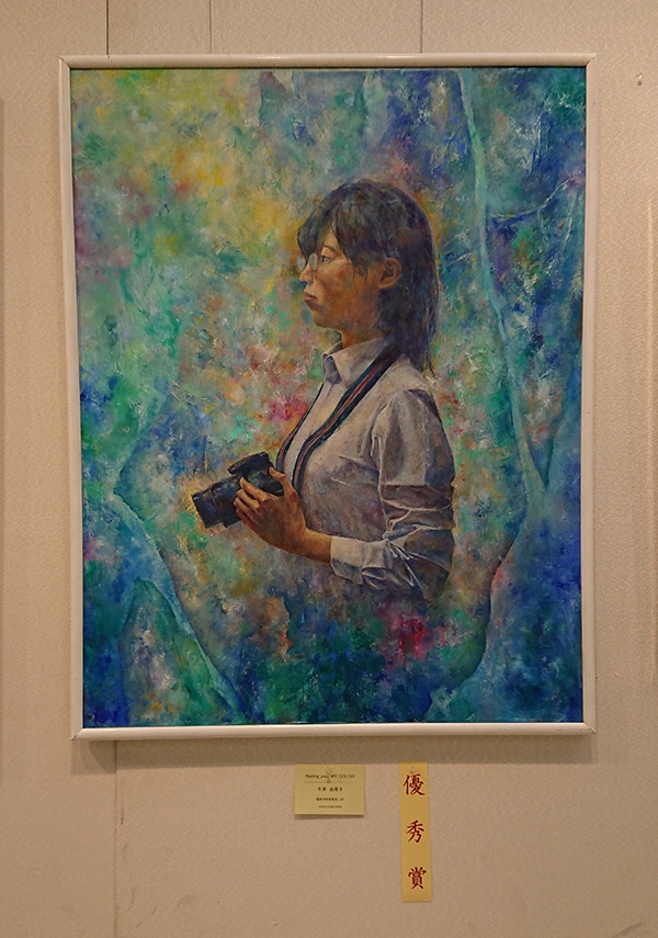 審査の結果、友人の姿をまばゆい光に包まれた心象的な空間に描いた50号の作品で、今津が「優秀賞」を受賞しました。