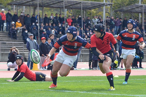 ラグビー部は、兵庫県で行われた第70回近畿高等学校ラグビーフットボール大会において、3/10(日)の1回戦で滋賀県代表・滋賀学園に95-7で勝利し、迎えた2回戦では気迫溢れるプレーで京都府大表・京都工学院に40-24で勝利しました。3回戦では大阪府大表・東海大大阪仰星に0-35で敗れましたが、近畿3位となり、2007年以来となる第20回全国高等学校選抜ラグビーフットボール大会への出場が決定しました。たくさんのご声援、ありがとうございました。