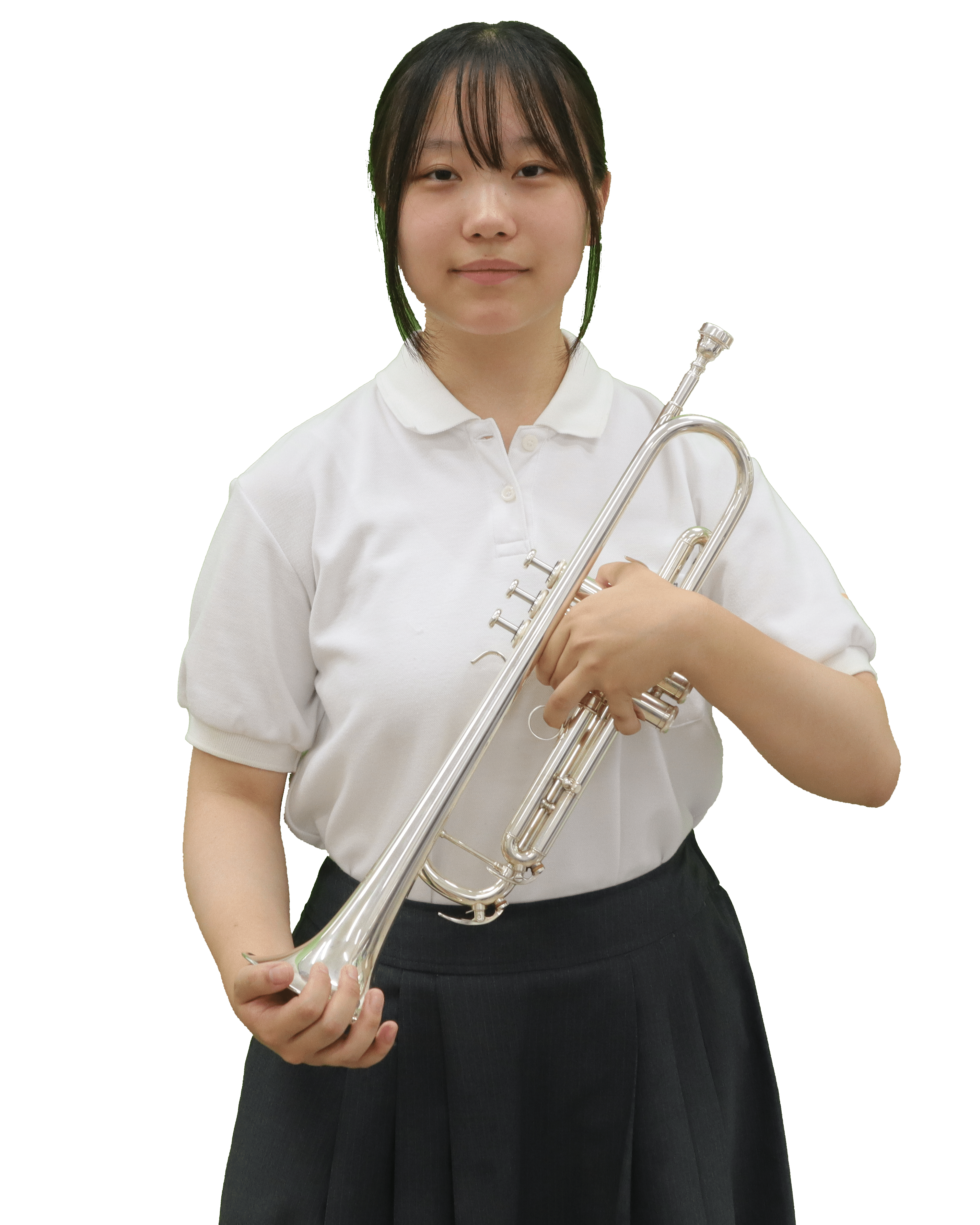 私は幼い頃からピアノを習っており、中学部から吹奏楽部に入りました。担当楽器であるコントラバスも中学部からはじめ、高等部でも引き続き吹奏楽部でコントラバスを担当しています。幼いころより音楽がずっと好きで、どれだけ忙しくても音楽に触れていたいと思い吹奏楽の世界に入りました。部活動の中では壁にぶつかることも多々ありますが、高校生という多感な時期だからこそ築くことのできる音楽性や人間関係を、高等部吹奏楽部の素晴らしい仲間と共に築き上げています。そしてその濃密な時間の中で高等部の自由と自治を実感しながら日々部活動を楽しんでいます。